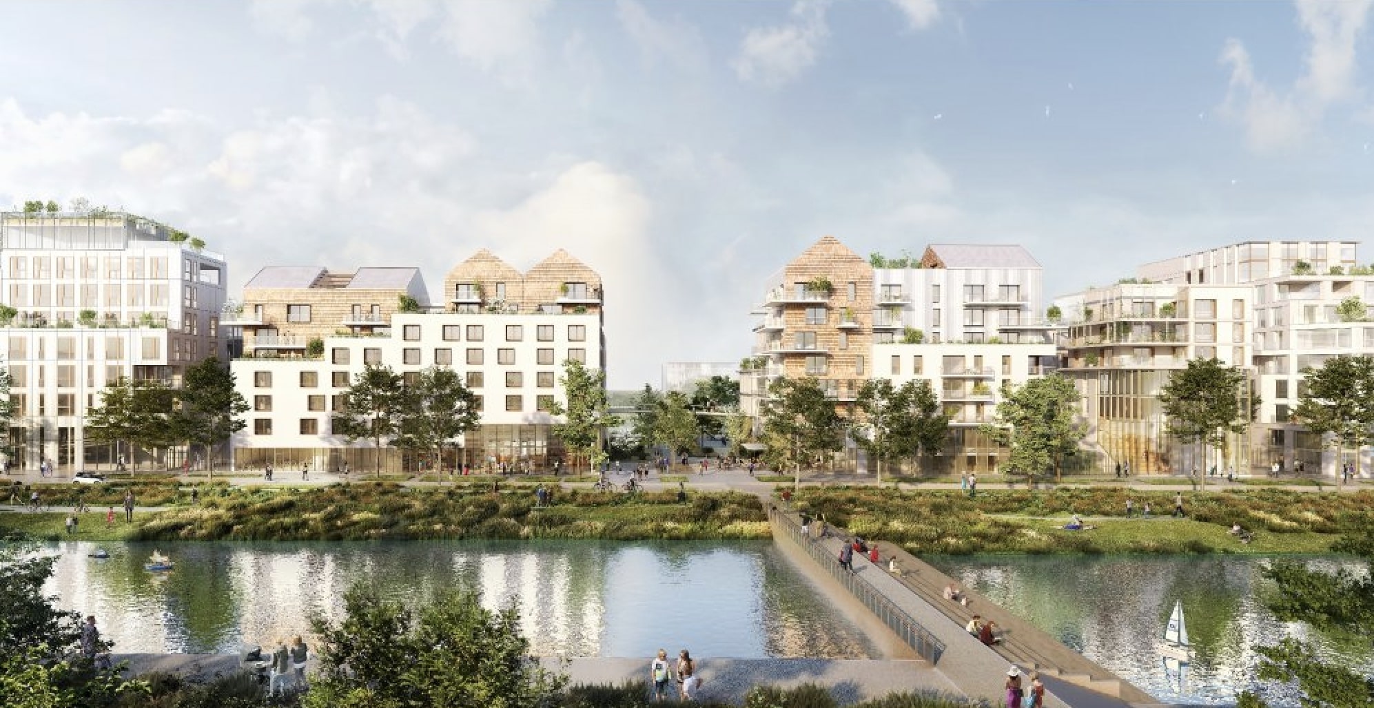 Sur près de 20 000 m², le projet déploie un programme mixte associant logements, bureaux, commerces et espaces paysagers.